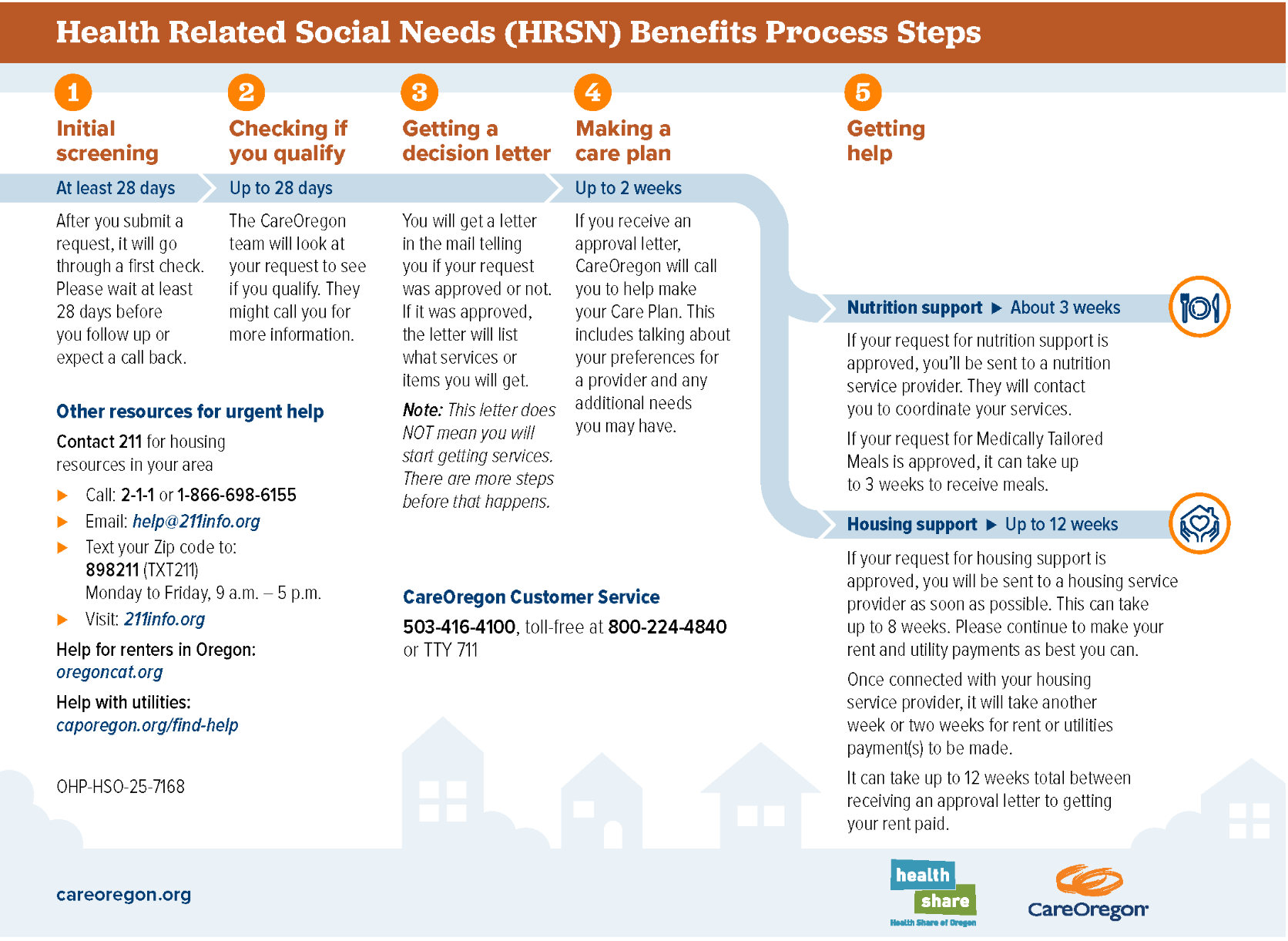 Staying healthy requires more than good health care. Food, shelter supports, and communication services that help you keep in touch with your care team are all key to your health. Health-related services are items or services like temporary lodging, supplemental food, or a cell phone and service plan so you can keep receiving telehealth care from your provider. Our Care Coordinators can help you get temporary lodging, replace or supplement food, or get a cell phone and service plan so you can keep receiving telehealth care from your provider. To learn more, please contact your Primary Care Provider or call the Health Share Customer Service team at 503-416-8090.
